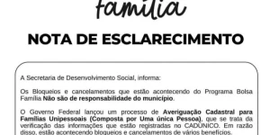 Os bloqueios e cancelamentos que estão acontecendo do Programa Bolsa Família não são de responsabilidade do município.