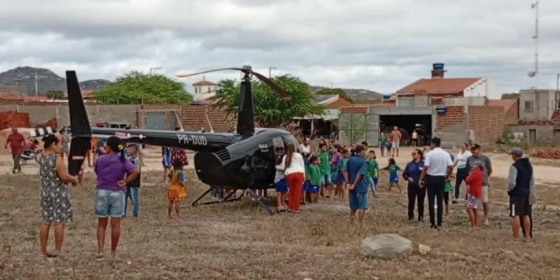 O pouso inesperado despertou curiosidade e logo atraiu moradores, que se aproximaram para ver de perto a aeronave. Alunos da Escola Pedro Bezerra Filho também interromperam as atividades para acompanhar o momento, considerado inusitado, já que pousos de helicóptero são raros na localidade.