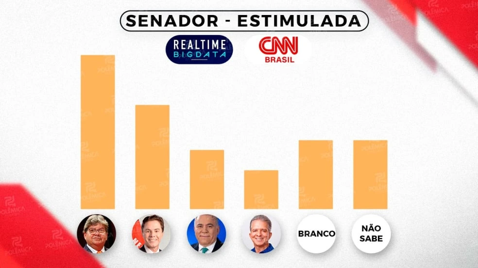 Em um dos cenários avaliados, João lidera com 31% das intenções de voto. Em segundo lugar está o senador Veneziano Vital do Rêgo (MDB), com 21%, seguido pelo ex-ministro da Saúde Marcelo Queiroga (PL), que marcou 12%. O deputado estadual Nabor Wanderley (Republicanos) aparece com 8%.