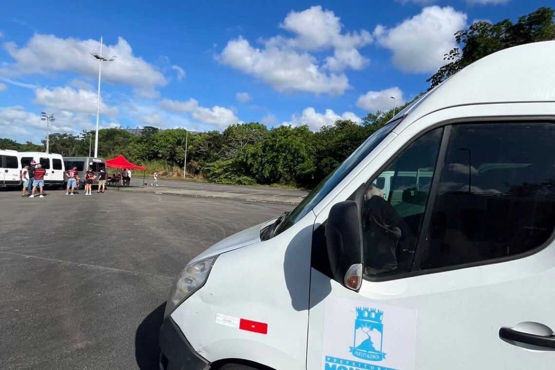 Uma van pertencente à Prefeitura de Monteiro, no Cariri paraibano, foi vista no estacionamento da Arena Pernambuco, em São Lourenço da Mata, no último sábado, dia da partida entre Flamengo e Sport Recife, realizada no estádio.