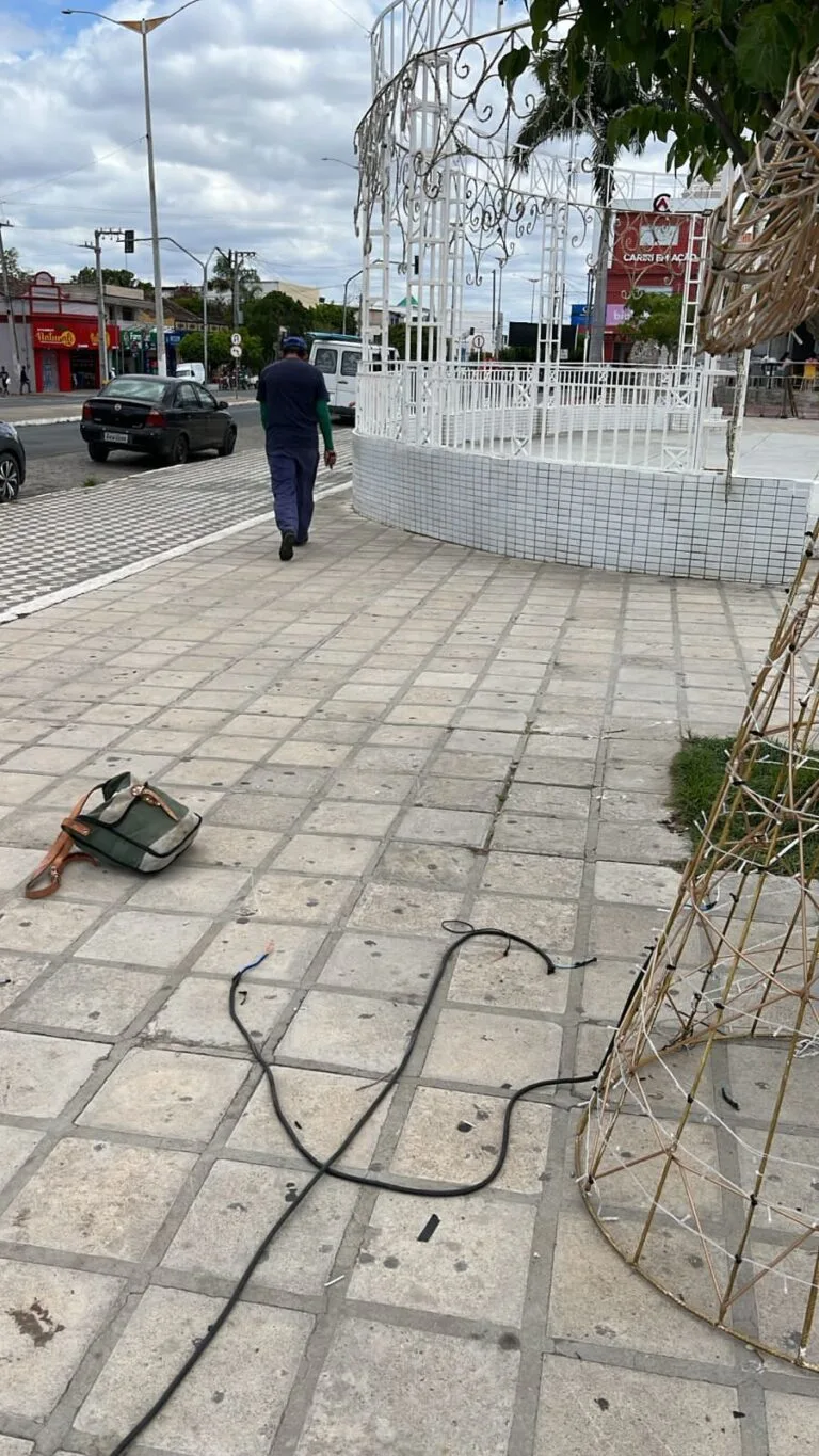 A ornamentação de Natal instalada na Praça João Pessoa, no centro de Monteiro, foi alvo de furto na madrugada desta sexta-feira (21). De acordo com informações da Prefeitura, criminosos subtraíram parte da fiação que liga os elementos decorativos, comprometendo a iluminação do espaço público.