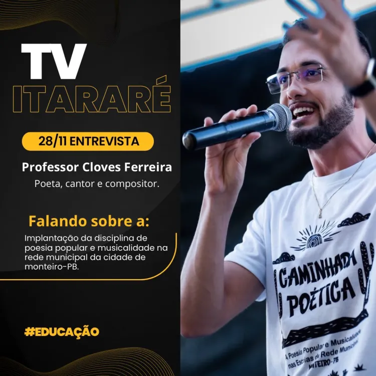 A disciplina de Poesia Popular e Musicalidade, implantada na rede municipal de ensino de Monteiro, vem ganhando destaque no cenário educacional paraibano. Nesta sexta-feira, representantes da educação do município estarão na TV Itararé, em Campina Grande, para apresentar a experiência pioneira que integra literatura, cultura regional e musicalidade ao currículo escolar.