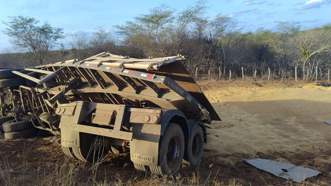 Um rodotrem de aproximadamente 25 metros tombou na manhã deste sábado (29) na BR-412, nas proximidades da cidade de Serra Branca, no Cariri paraibano. Segundo informações repassadas, parte da composição — que estava carregada de milho — desengatou do cavalinho, provocando o tombamento da estrutura traseira.