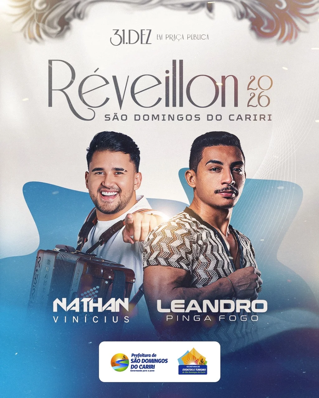 A Prefeitura de São Domingos do Cariri divulgou oficialmente as atrações do Réveillon 2026, que será realizado no dia 31 de dezembro, em praça pública, marcando a virada do ano com muita música e festa para toda a população.