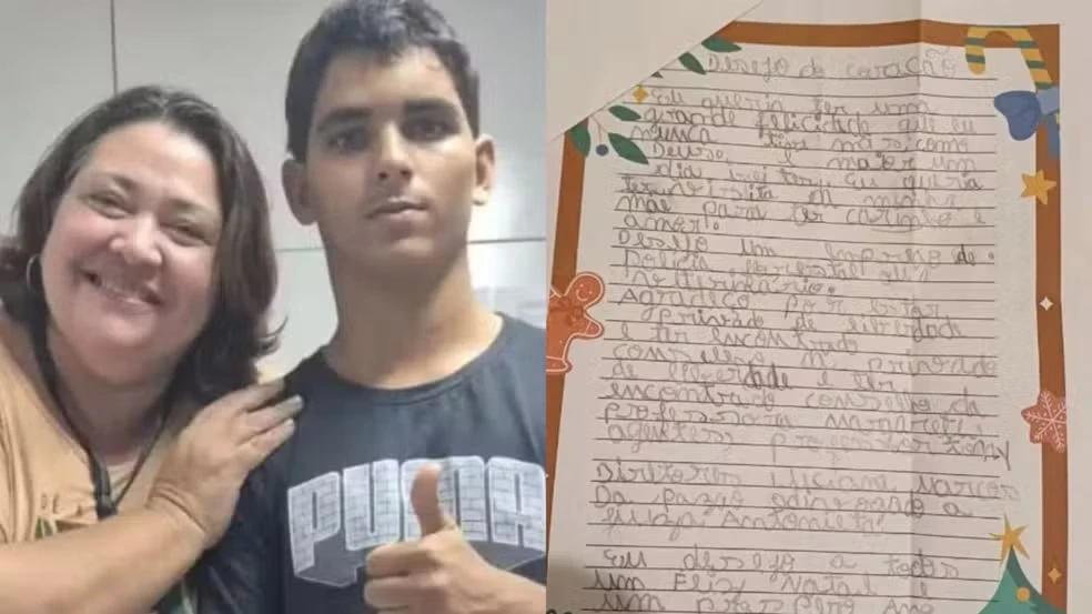 Na carta deixada por Gerson no Natal para uma professora do Centro Educacional do Adolescente, na capital paraibana, intitulada de “Desejo do Coração”, ele disse que esperava por “uma grande felicidade que nunca teve”, além de fazer outros pedidos.