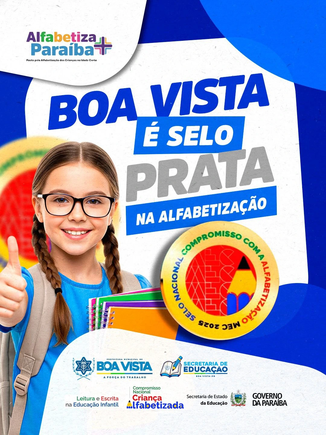 A Prefeitura Municipal de Boa Vista, no Cariri paraibano, recebeu nesta semana, o Selo Prata de Alfabetização, reconhecido pelo Ministério da Educação (MEC) por meio do programa Compromisso Nacional Criança Alfabetizada, em parceria com o Governo do Estado da Paraíba através do programa Alfabetiza Mais Paraíba.