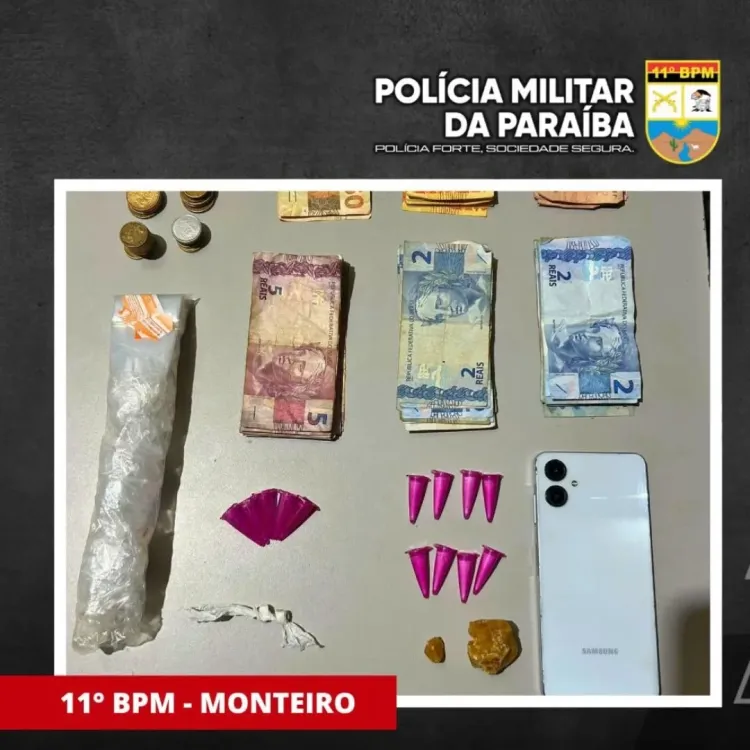Neste domingo (05), policiais militares do 11º Batalhão realizaram a prisão de um homem por tráfico de drogas no município de Monteiro, no Cariri paraibano, durante ações da Operação Semana Santa.