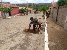 A gestão municipal está doando as mudas e plantando em frente das casas e os morador se encarregam dos cuidados, como aguar e manter a plantinha viva.