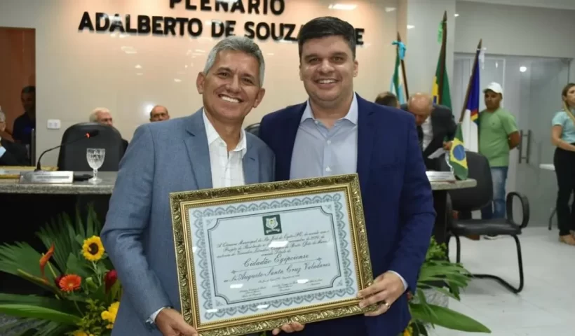 Ouro Velho: ex-prefeito Dr. Augusto Valadares recebe troféu do Prêmio Referência 2024 como prefeito referênciaVereador Paulo Júnior recebe troféu do Prêmio Referência 2024 como vice-prefeito referência