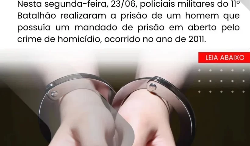 Nesta segunda-feira, 23 de junho, policiais militares do 11° Batalhão realizaram a prisão de um homem que possuía um mandado de prisão em aberto pelo…