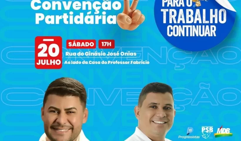 Na noite do último sábado (20), foi realizada a convenção que homologou a candidatura à reeleição do atual prefeito Edglei Amorim e do vice-prefeito Rodrigo,…