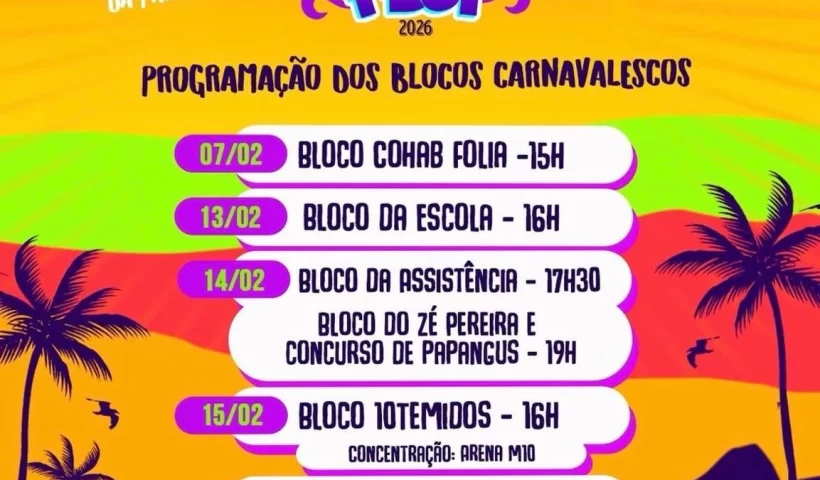 A Prefeitura de São João do Tigre divulgou a programação oficial dos blocos carnavalescos do Tigre Fest 2026. O calendário reúne datas, horários e locais…